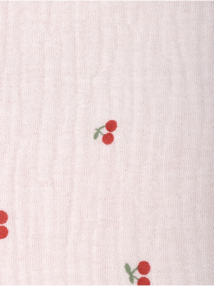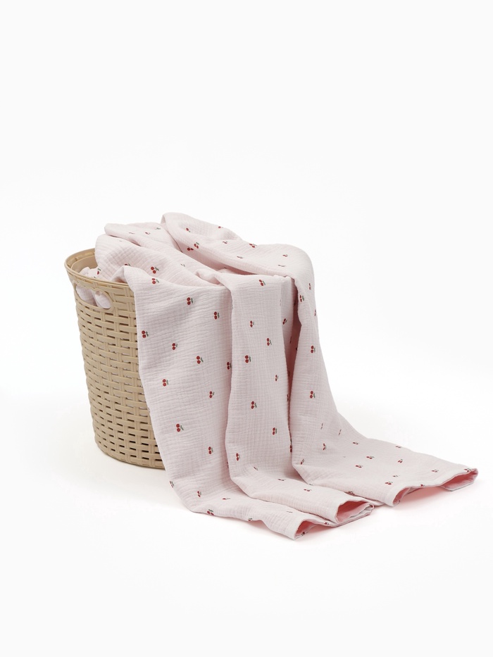 Покрывало «Спелая вишенка», 100×130 см, 4-слойный муслин, 100% хлопок — это нежное и дышащее покрытие для детского пространства. Лёгкое изделие с ягодным принтом подходит на кроватку, пелёнальный стол или как игровое покрывало — заботливое решение для тех, кто ценит натуральность, мягкость и атмосферу детской заботы без излишеств.