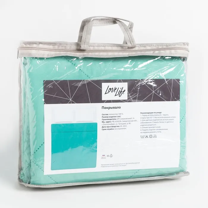 Покрывало LoveLife 2 сп 180х210±5 см, цвет мятный, микрофайбер, 100% п/э — Характеристики