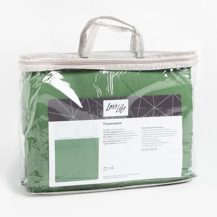 Покрывало LoveLife 2 сп 180х210±5 см, цвет зелёный, микрофайбер, 100% п/э — Характеристики