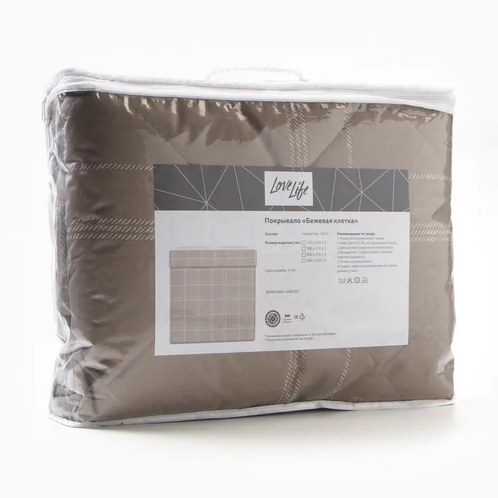 Покрывало LoveLife 2 сп «Бежевая клетка», 180х210±5см, микрофайбер, 100% п/э — Характеристики