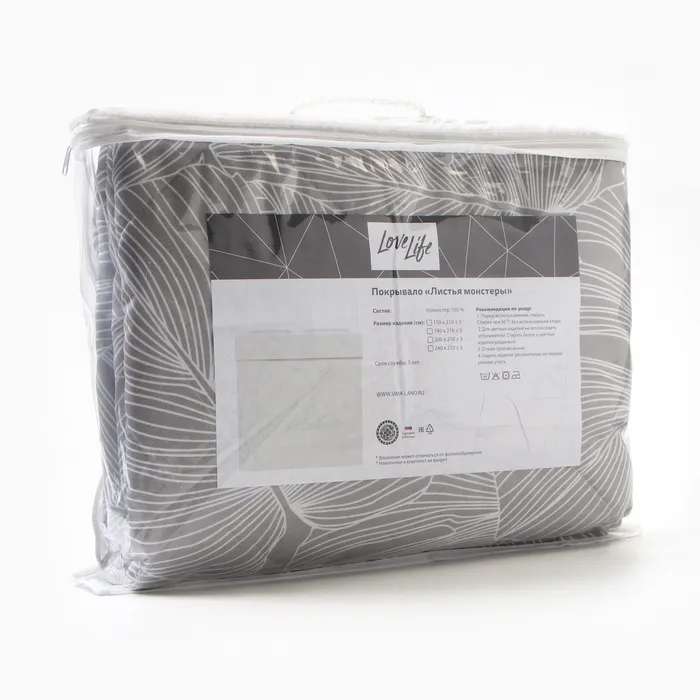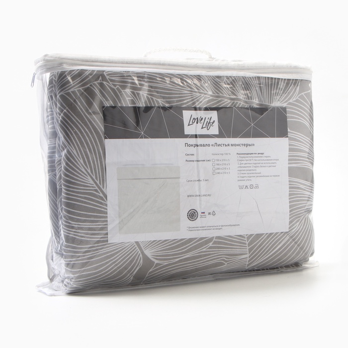 Покрывало LoveLife 2 сп «Листья монстеры», 180х210±5см, микрофайбер, 100% п/э — Характеристики
