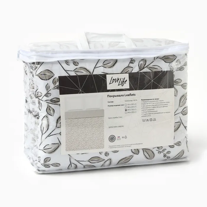 Покрывало LoveLife евро Leaflets 200*230±5 см, жатка, 100% п/э — Характеристики