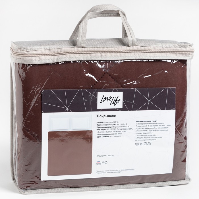 Покрывало LoveLife Евро Макси 240х210±5 см, цвет темно-коричневый, микрофайбер, 100% п/э — Характеристики