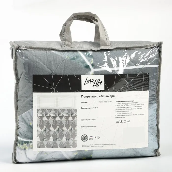 Покрывало LoveLife евро "Мрамор" 200*210±5см, микрофайбер, 100% п/э — Характеристики