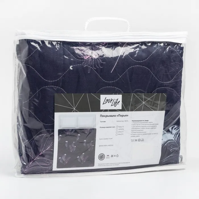 Покрывало LoveLife евро "Перья" 200*210±5 см, новосатин,80 г/м2 — Характеристики