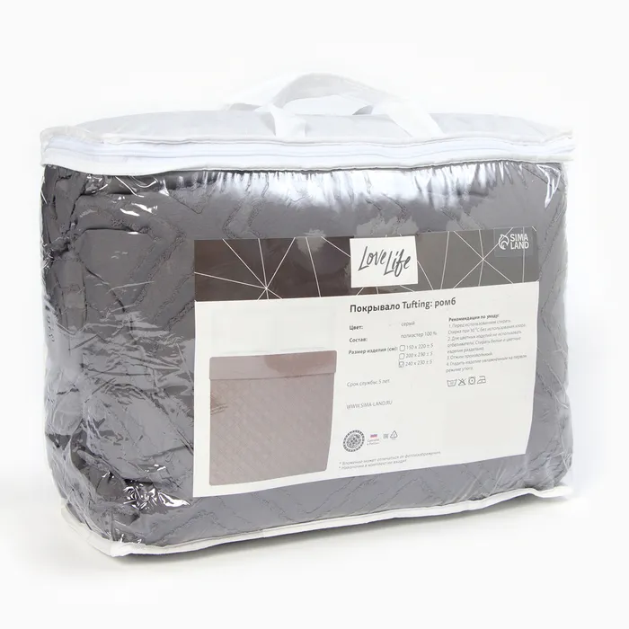Покрывало LoveLife Tufting: Ромб цв.серый, 200*230±5см, микрофайбер, 100% п/э — Характеристики
