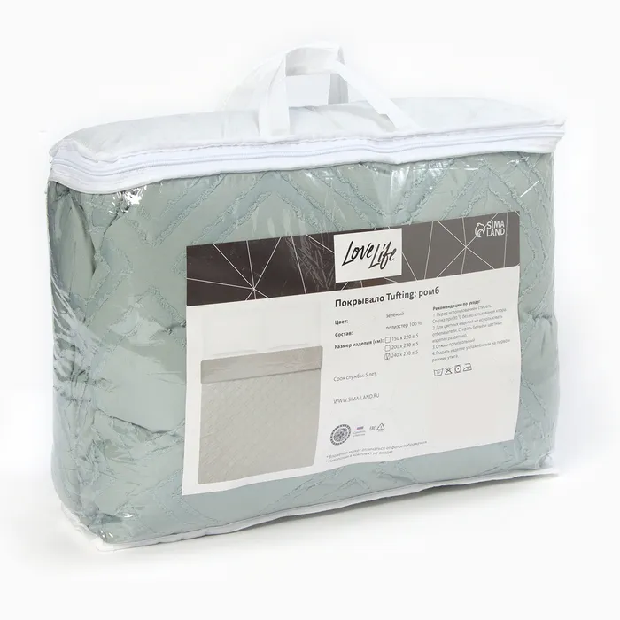 Покрывало LoveLife Tufting: Ромб цв.зеленый, 200*230±5см, микрофайбер, 100% п/э — Характеристики