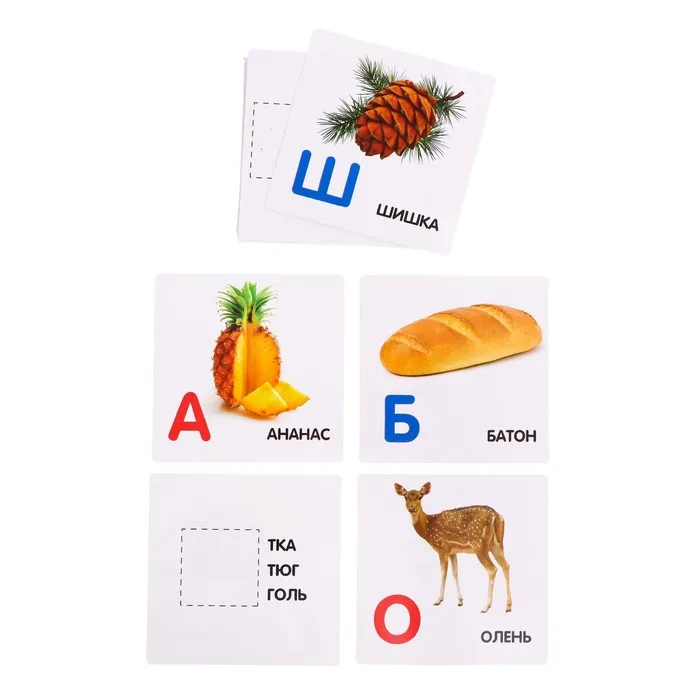 - Благодаря карточкам с картинками малыш быстрее запомнит, как выглядит и называется каждая буква алфавита.