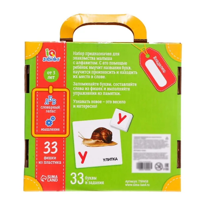 С полезным чемоданчиком «Алфавит» ребёнок выучит названия букв, научится произносить звуки и находить их место в словах, а также прокачает логическое мышление и расширит словарный запас. Узнавать новое — весело и интересно, а с компактным чемоданчиком это можно делать где угодно!