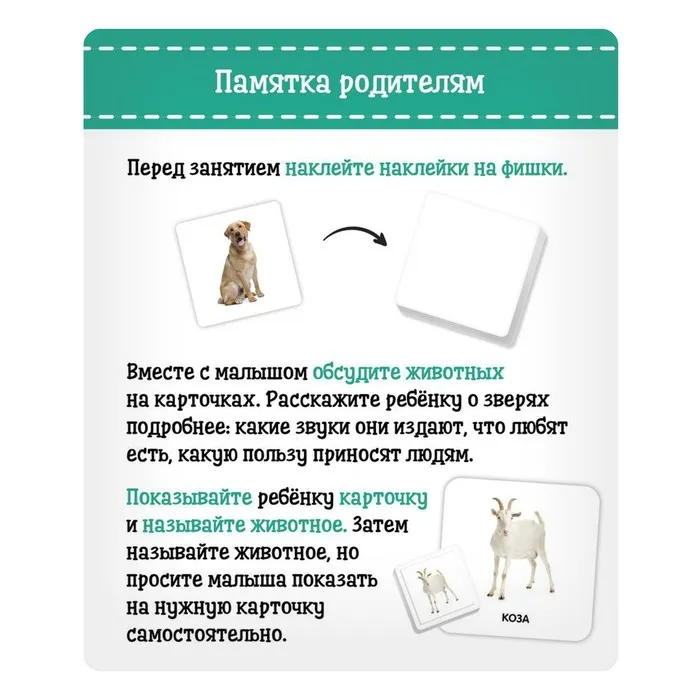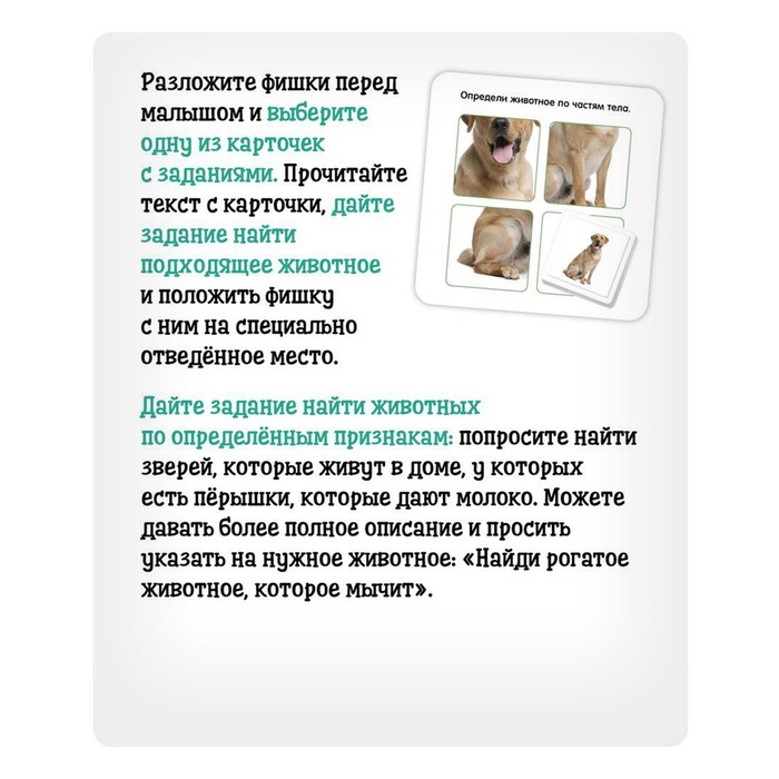 Полезный чемоданчик «Домашние животные», по методике Домана, пластиковые фишки — Характеристики