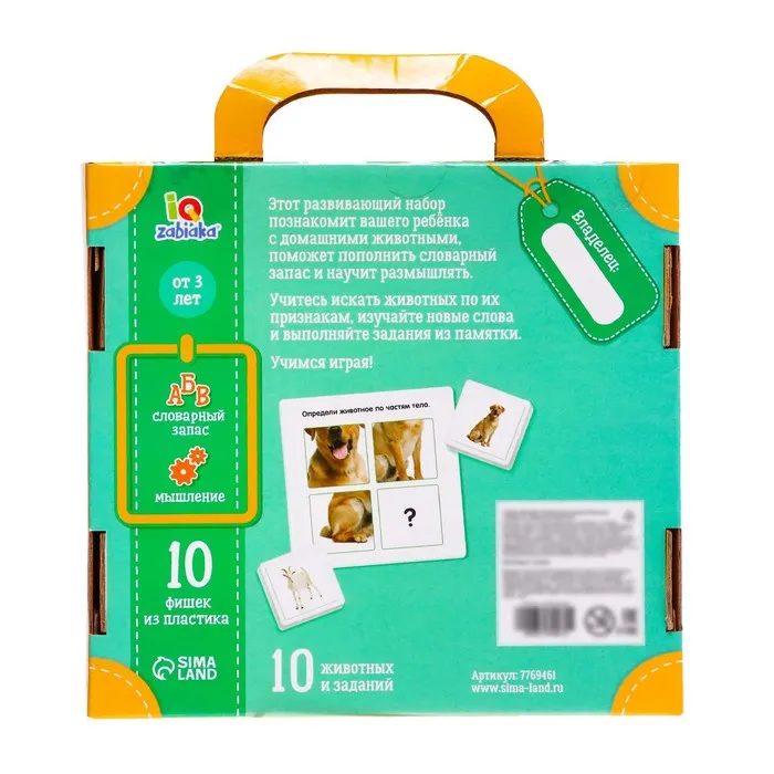 С помощью полезного чемоданчика «Домашние животные» ребёнок познакомится с домашними животными, пополнит словарный запас и прокачает логическое мышление.