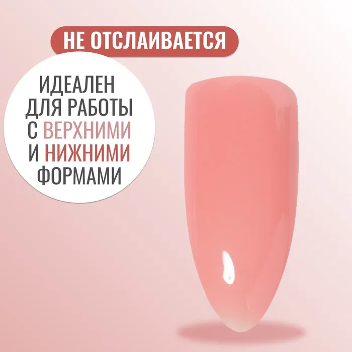 - Удобство применения: легко наносится на форму или типсы и требует минимального времени для сушки в лампе, сохраняя гибкость для последующей коррекции формы.