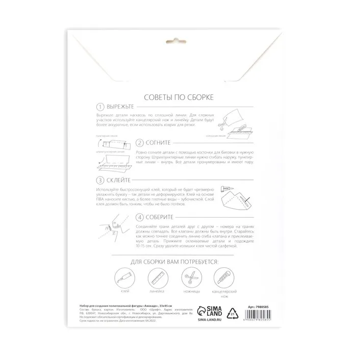 Полигональная фигура из бумаги «Авокадо», 23 х 30 х 16 см