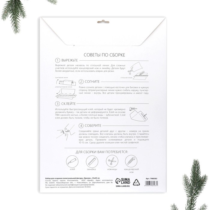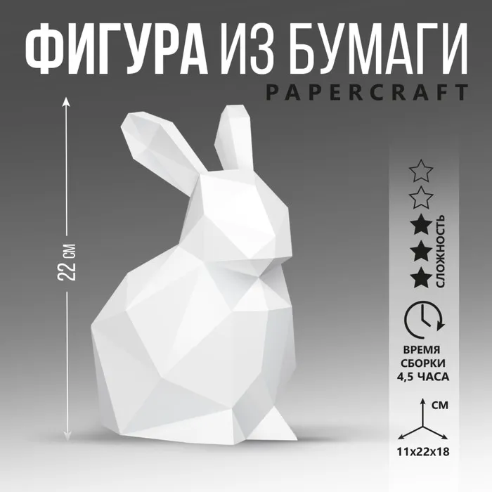Полигональная фигура из бумаги «Кролик», 11 х 22 х 18 см