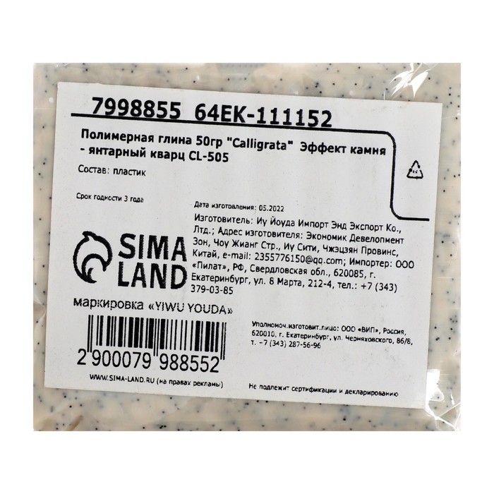 Полимерная глина 50 гр, "Эффект камня", янтарный кварц — Характеристики