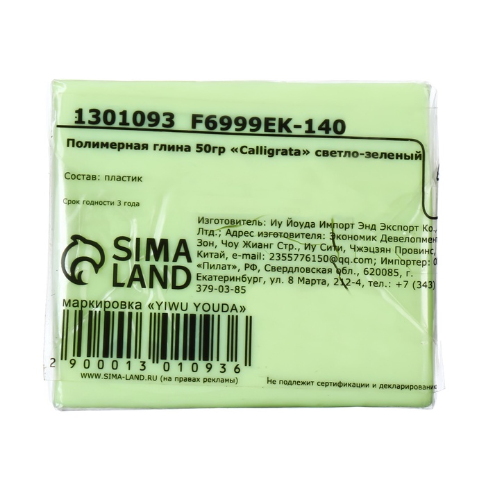 Полимерная глина 50 грамм "Calligrata" светло-зеленый — Характеристики