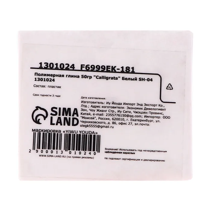 Полимерная глина Calligrata, 50 г, цвет белый — Характеристики