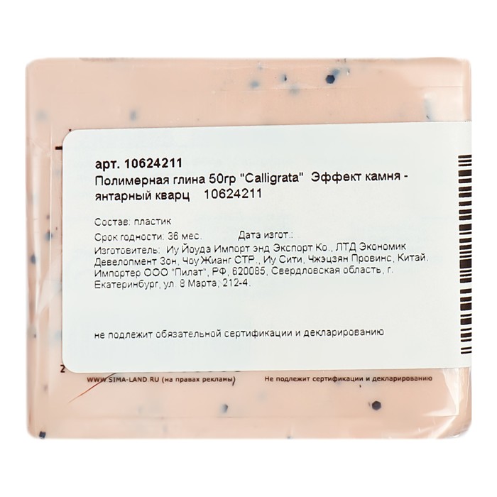 Полимерная глина Calligrata "Эффект камня - янтарный кварц", розовый, 50гр — Характеристики