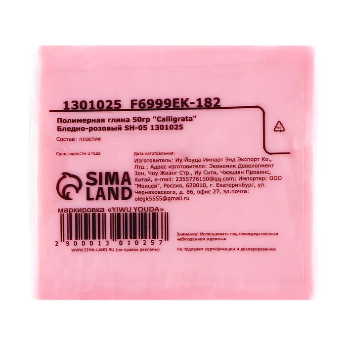 Полимерная глина Calligrata SH-05, 50 г, цвет бледно - розовый — Характеристики