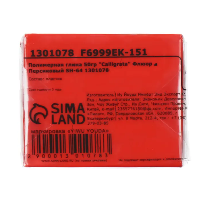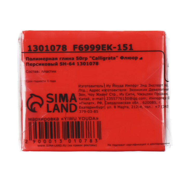 Полимерная глина Calligrata SH-64, 50 г, флюоресцентная, персиковая — Характеристики