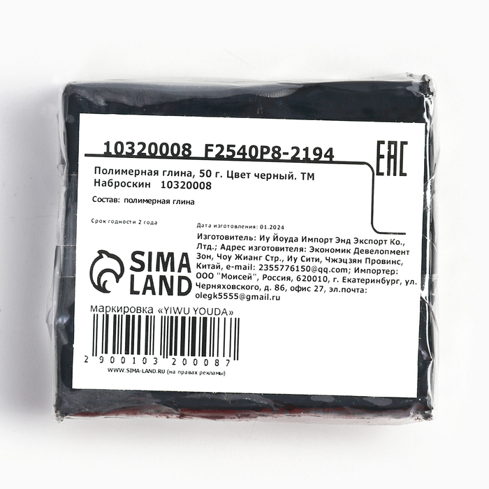 Полимерная глина для лепки, 50 г запекаемая, цвет чёрный «Наброскин» — Характеристики