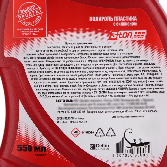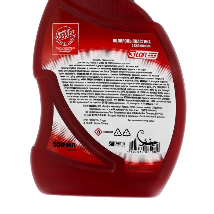 Полироль предназначен для очистки, защиты и ухода за пластиковыми и резиновыми деталями автомобилей и других транспортных средств. Активные компоненты глубоко проникают в поверхность материалов, восстанавливают яркость и насыщенность цвета, придают обработанным поверхностям материалов, восстанвливают яркость и насыщенность цвета, придают обработанным поверхностям блеск. Обладает антистатическими и грязеотталкивающими свойствами.
