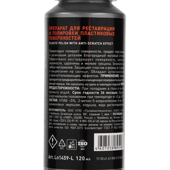 Полироль-реставратор пластика LAVR профессиональная формула, 120 мл, флакон Ln1459 — Характеристики