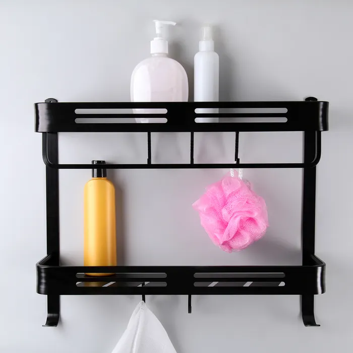 Полка 2-х ярусная, 50×12,6×43,6 см, цвет чёрный — Характеристики