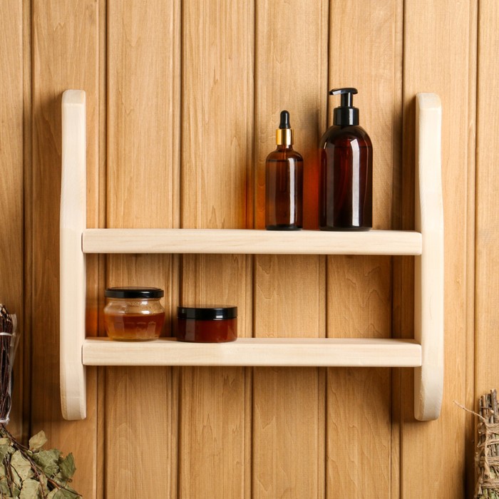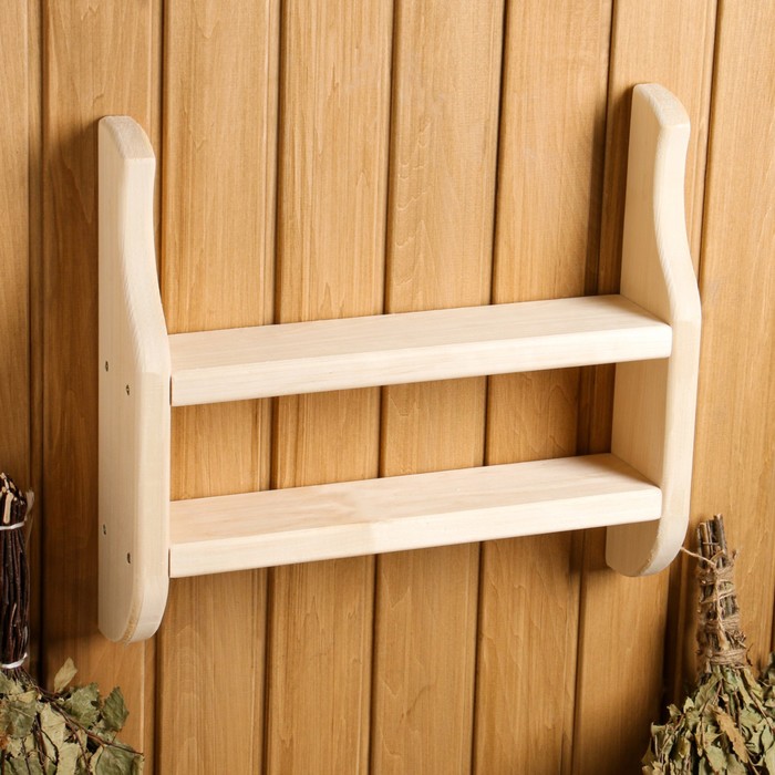Полка для бани и сауны, 44×39×9 см, деревянная, 2 яруса, «Добропаровъ» — Характеристики