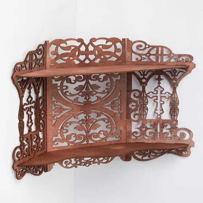 Полка для икон, иконостас в квартиру «Красный угол. Божница в дом», орех, 42×22хх52 см — Характеристики