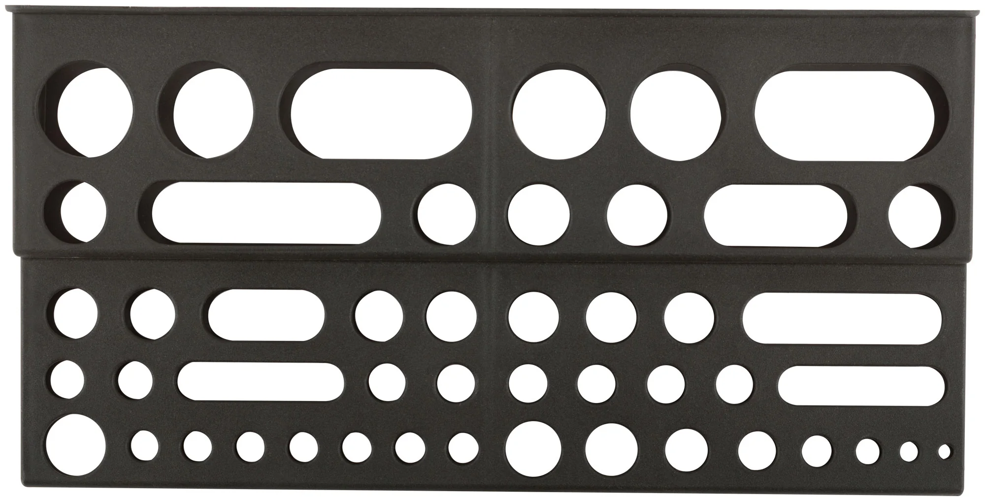 Эта компактная пластиковая полка идеально подходит для организации рабочего пространства в мастерской или гараже. С 48 отверстиями, она позволяет удобно разместить и хранить различные инструменты, обеспечивая к ним легкий доступ и экономию места.