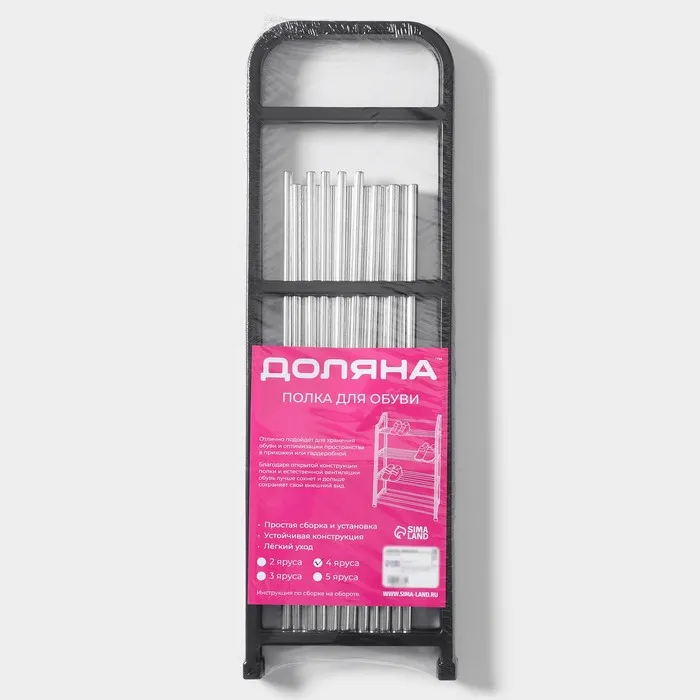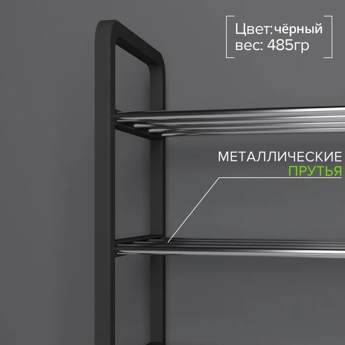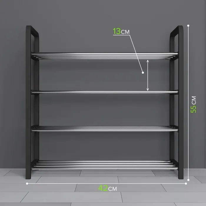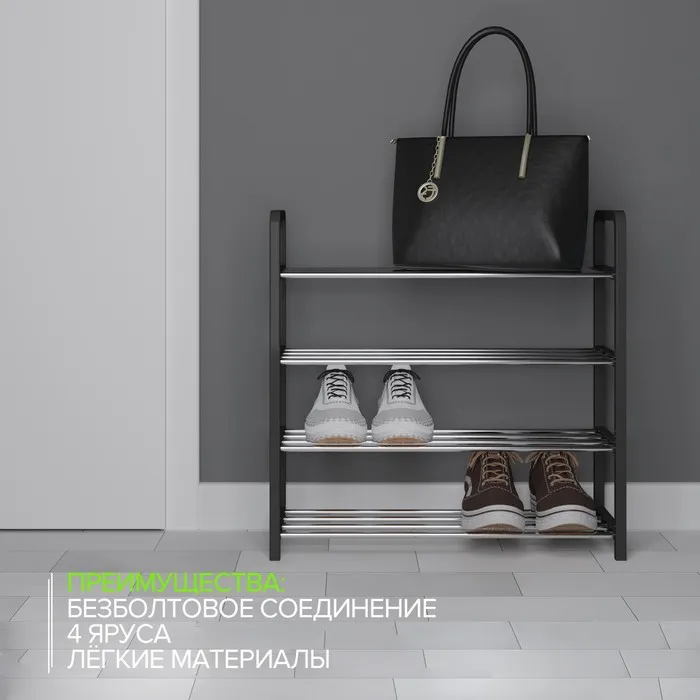 Полка для обуви Доляна, 4 яруса, 42×19×55 см, чёрная — Характеристики