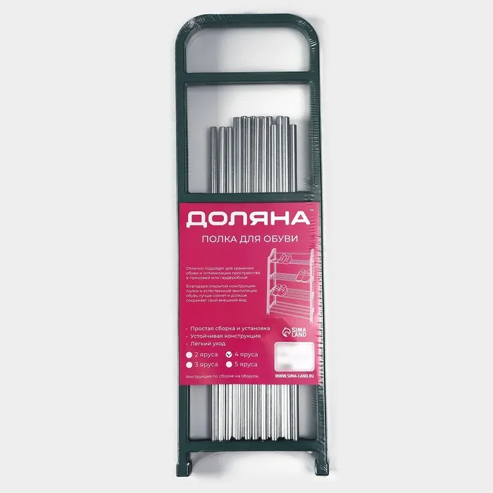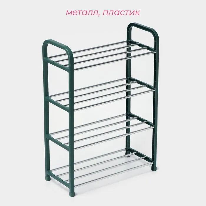 Полка для обуви Доляна, 4 яруса, 42×19×59 см, зелёная — Характеристики