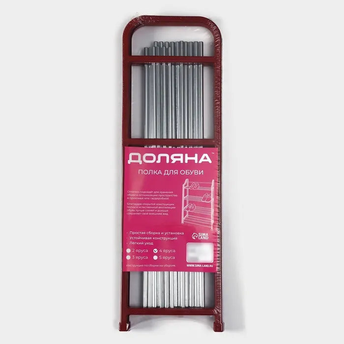 Полка для обуви Доляна, 4 яруса, 50×19×59 см, красная — Характеристики