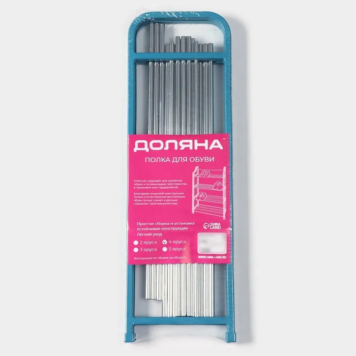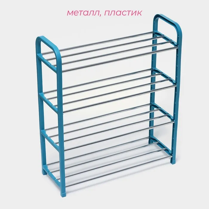 Полка для обуви Доляна, 4 яруса, 50×19×59 см, синяя — Характеристики