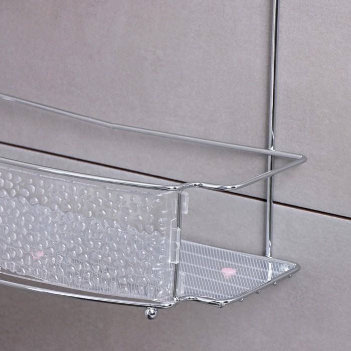 - шампуней, гелей и прочих принадлежностей для ванной комнаты: специальные стенки не позволят скользкому тюбику или бутылёчку упасть или скатиться вниз;