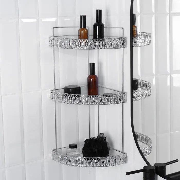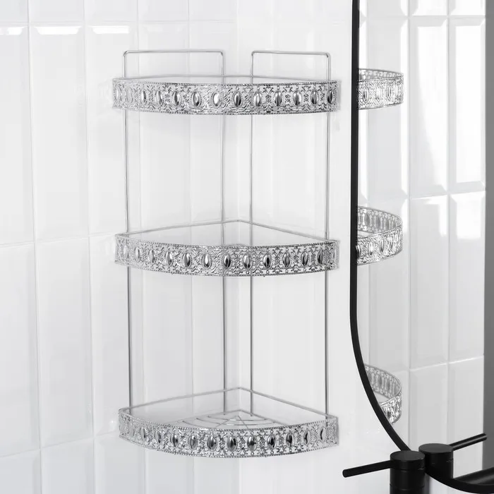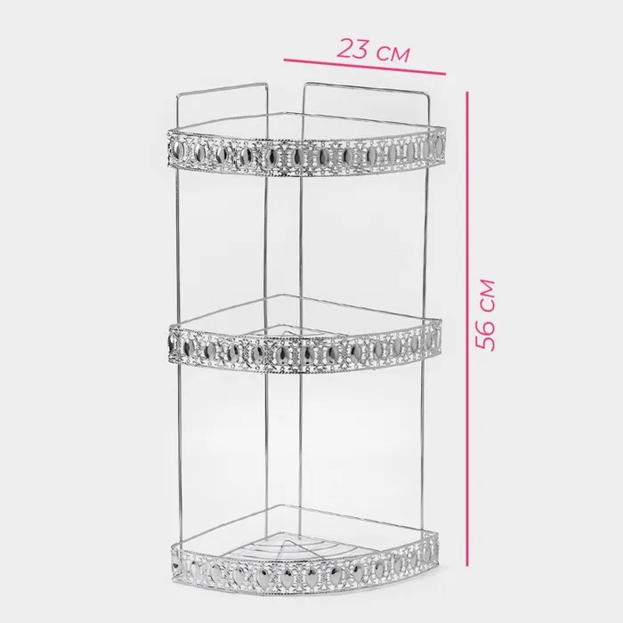 Полка для ванной Доляна, угловая, 3-ярусная, 23×23×54 см, хромированная — Характеристики