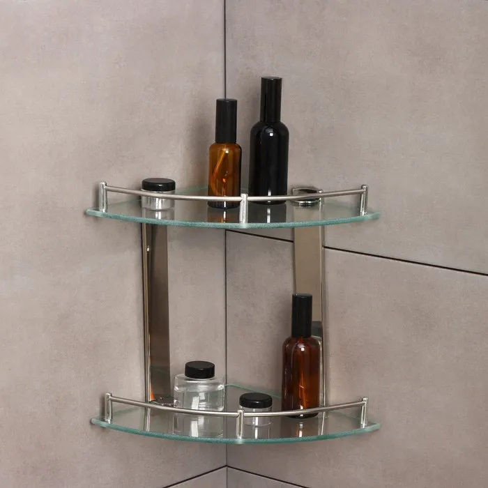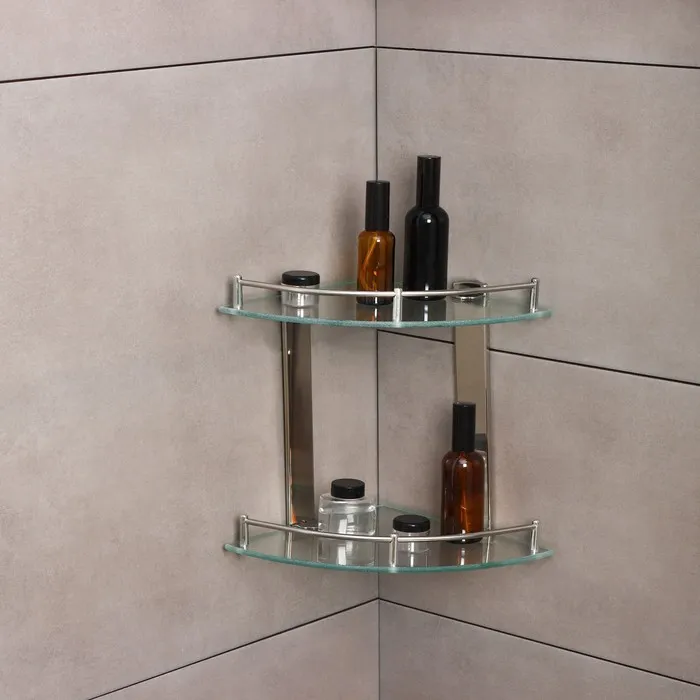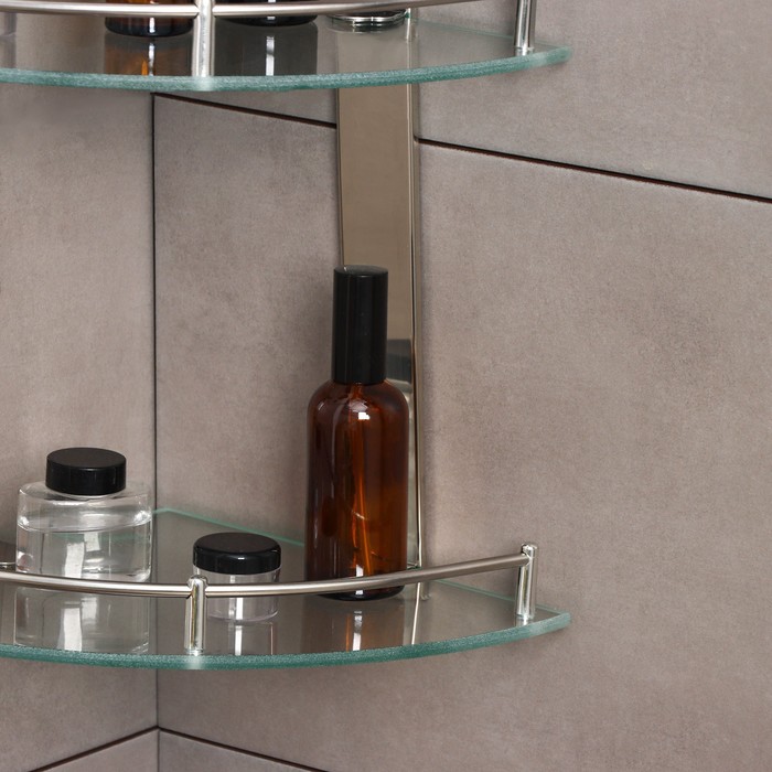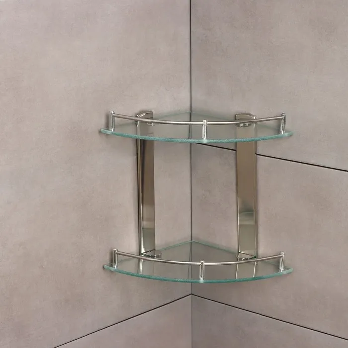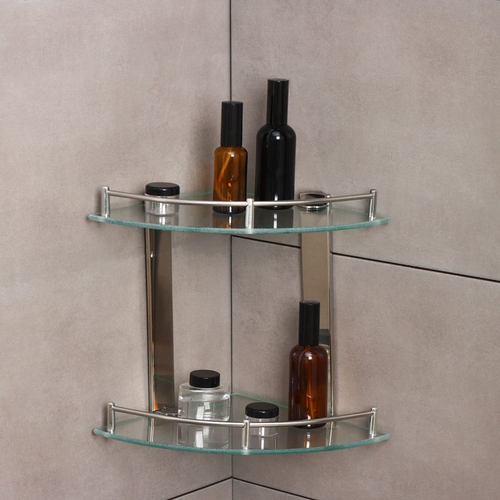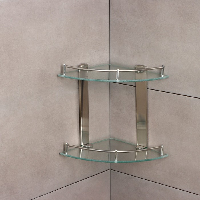 Полка для ванной комнаты 2х-ярусная угловая Штольц Stölz, 24×24×28 см, нержавеющая сталь, стекло — Характеристики