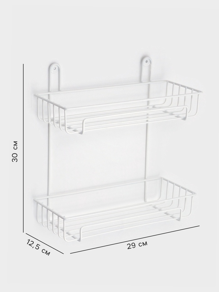 Полка для ванной прямоугольная, 2-х ярусная, 29×12.5×30 см, белая — Характеристики
