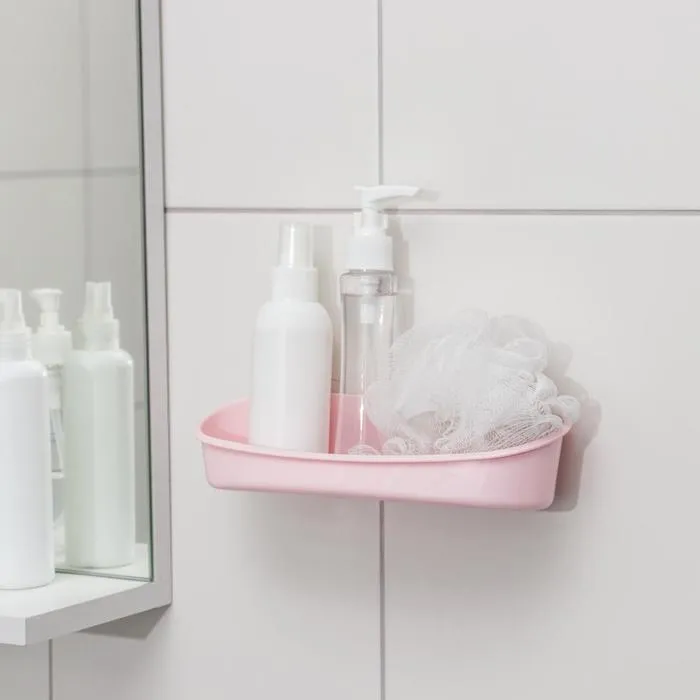 Угловая полка — удобный и вместительный аксессуар для ванной комнаты с мыльницей. Подходит для хранения косметических и хозяйственных средств., а также мыла.