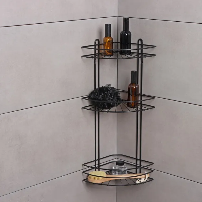 Полка для ванной угловая 3-х ярусная, 20×20×49 см, чёрная — Характеристики