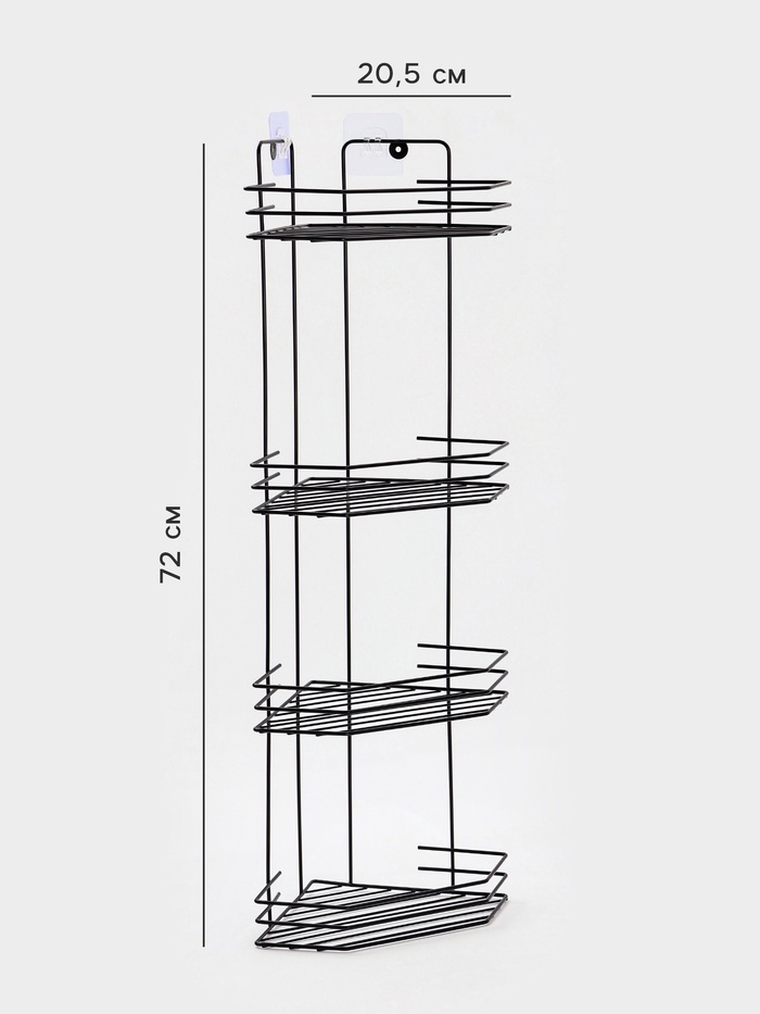 Полка для ванной угловая 4-х ярусная, 20.5×20.5×72 см, чёрная — Характеристики