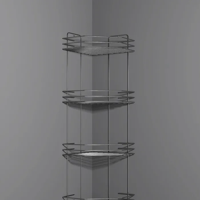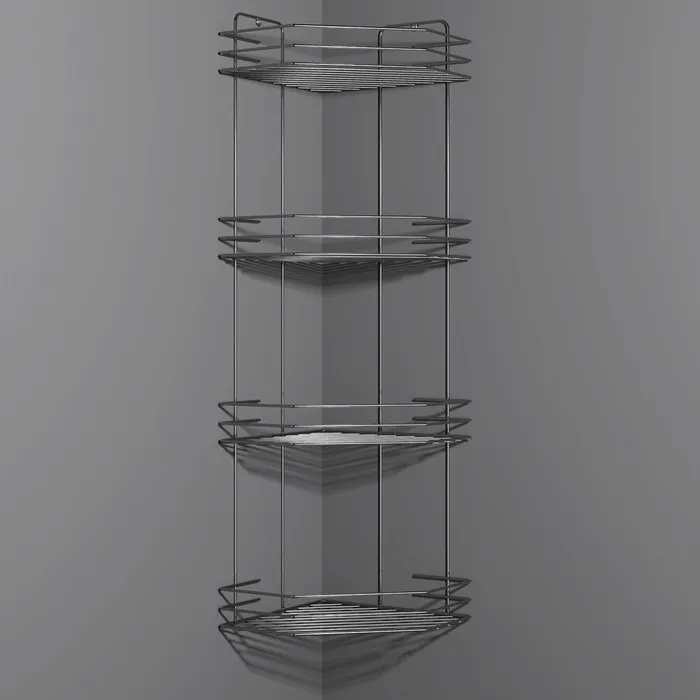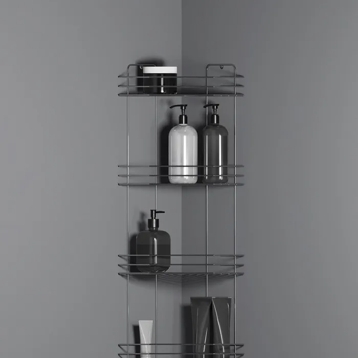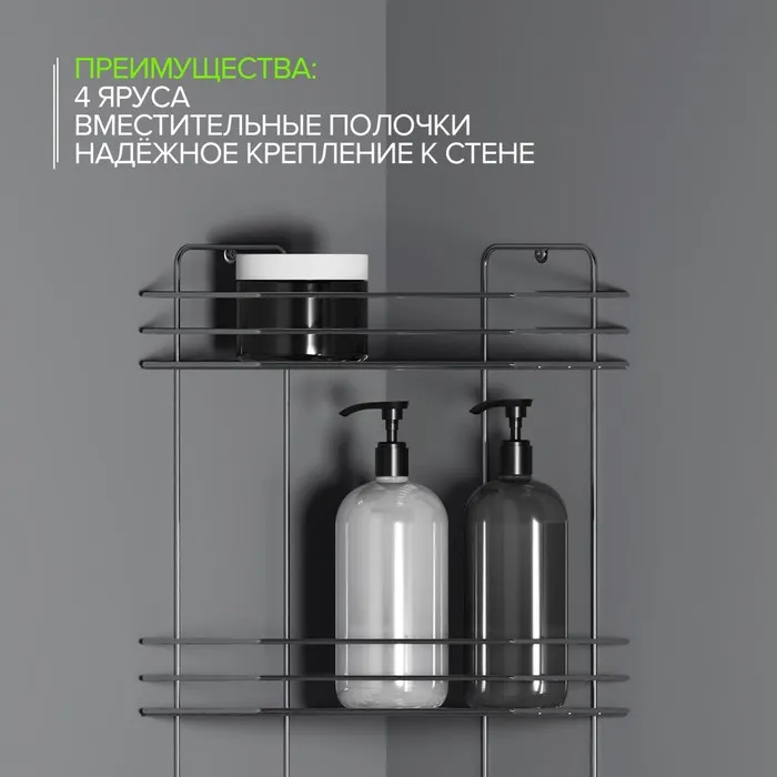 Угловая 4-х ярусная полка — удобный и вместительный аксессуар для ванной комнаты. Подходит для хранения небольших полотенец, косметических и хозяйственных средств.