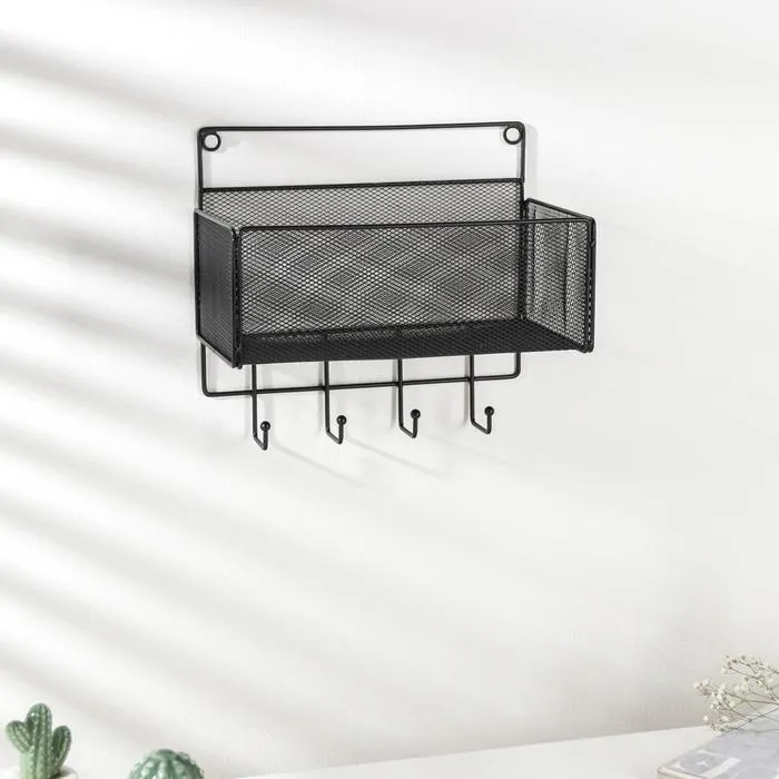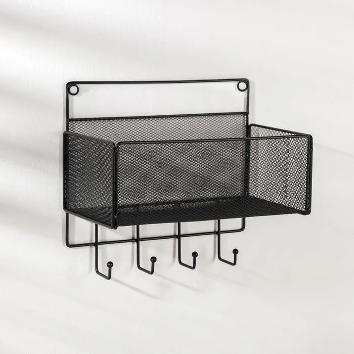 Полка на 4 крючка Доляна «Кантри», 15×27×24 см, цвет чёрный — Характеристики
