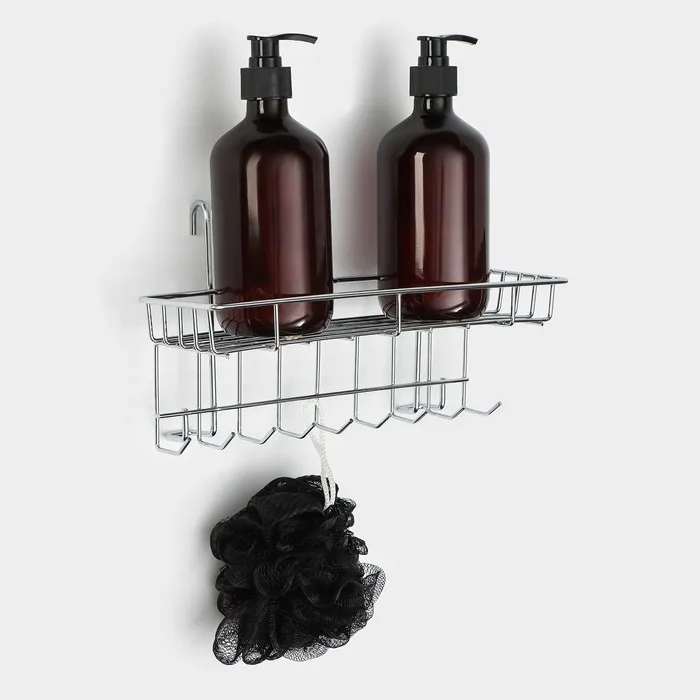 Полка на рейлинг с крючками Доляна, 29×10×17 см, хромированная — Характеристики