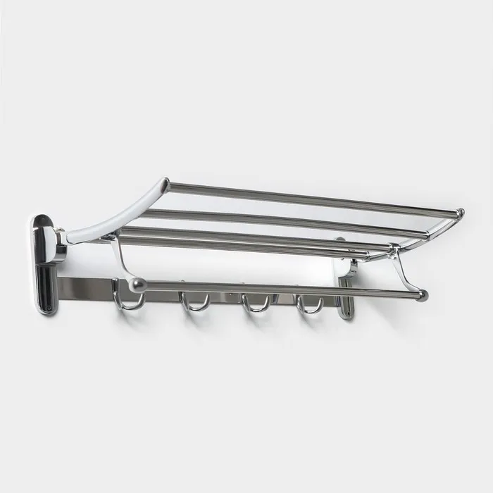Полка откидная с держателем полотенец, 4 крючка, 58×25×13 см, хром — Характеристики