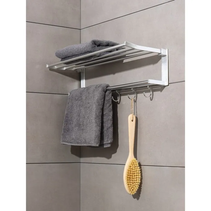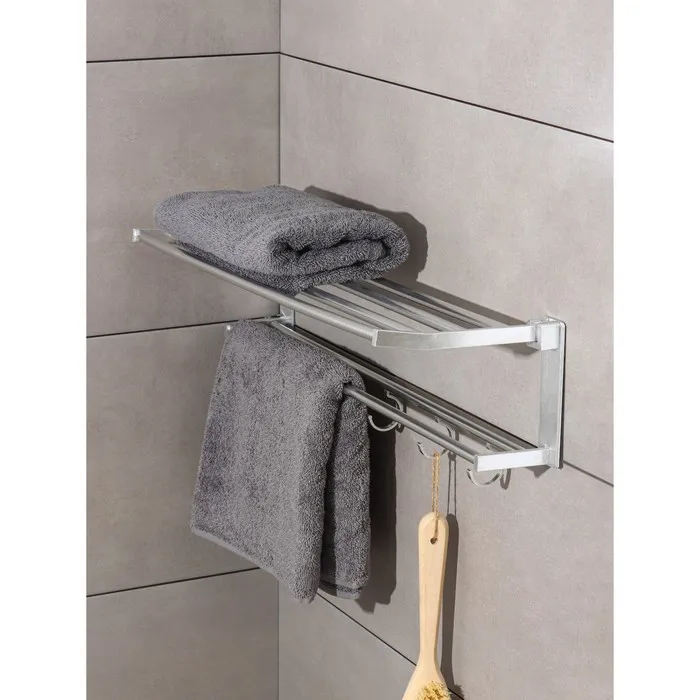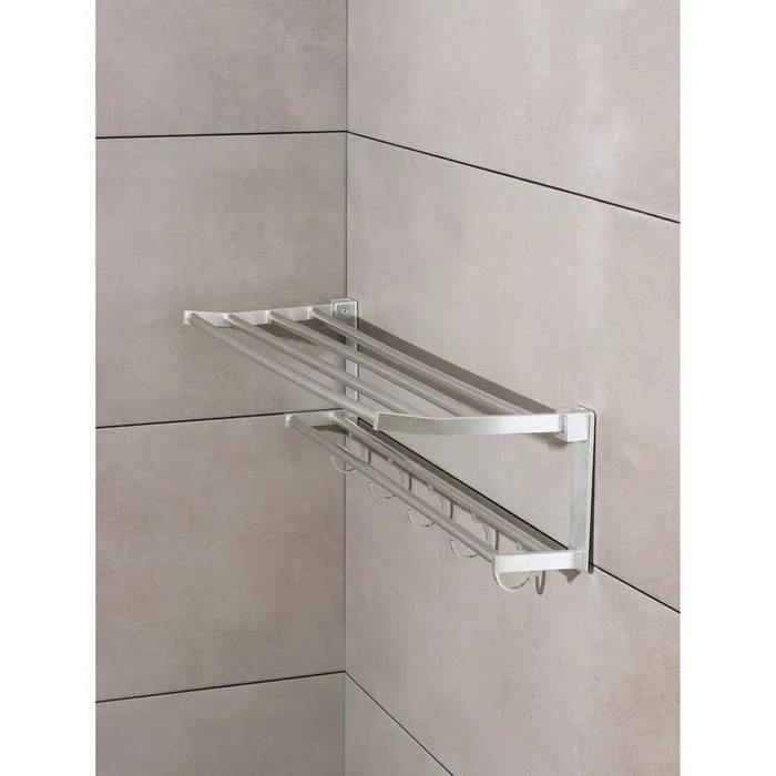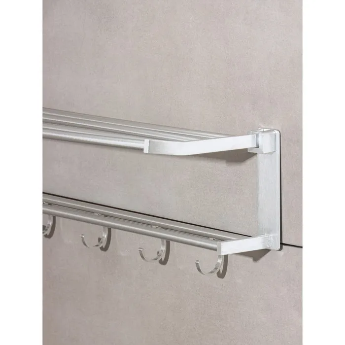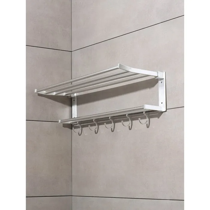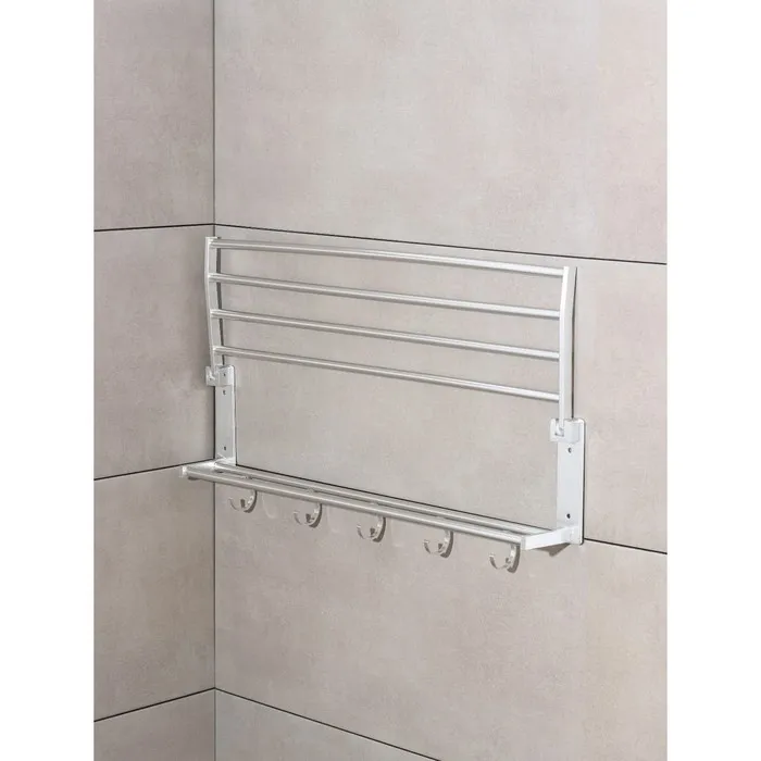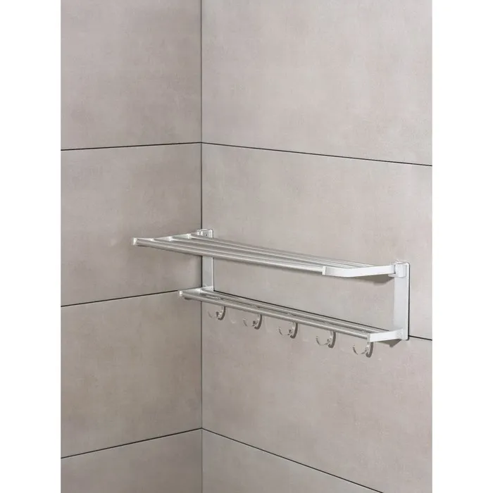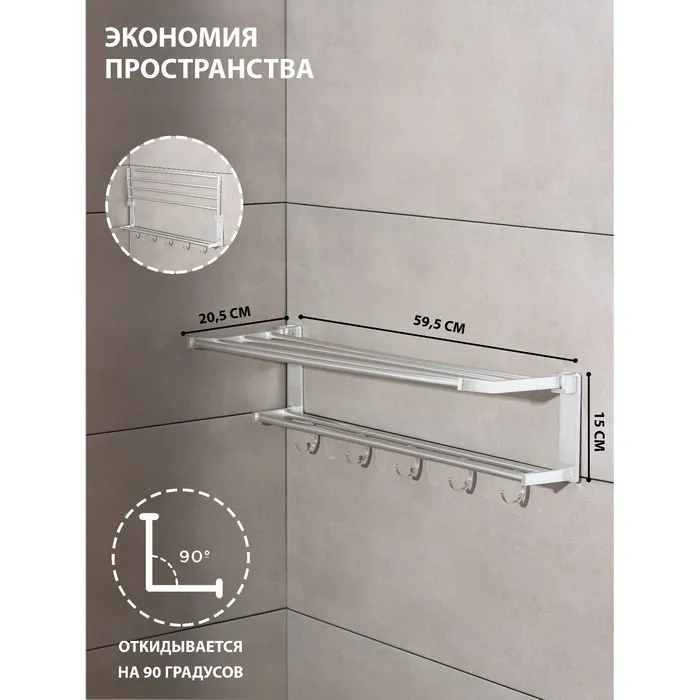 Полка откидная с держателем полотенец, 5 двигающихся крючков, 59,5×20,5×15 см, алюминий — Характеристики