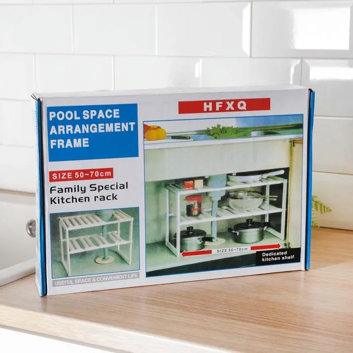 Полка под раковину раздвижная, 26×50(70)×38 см, белая — Характеристики