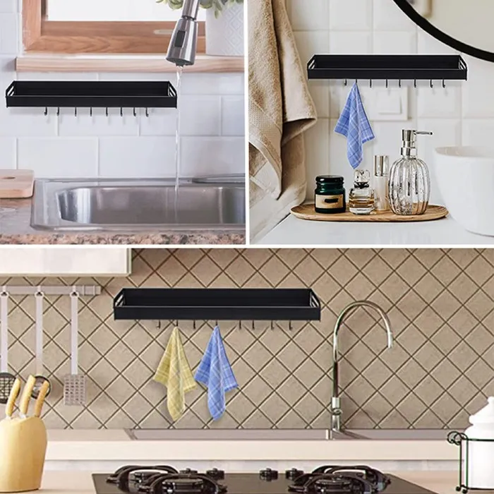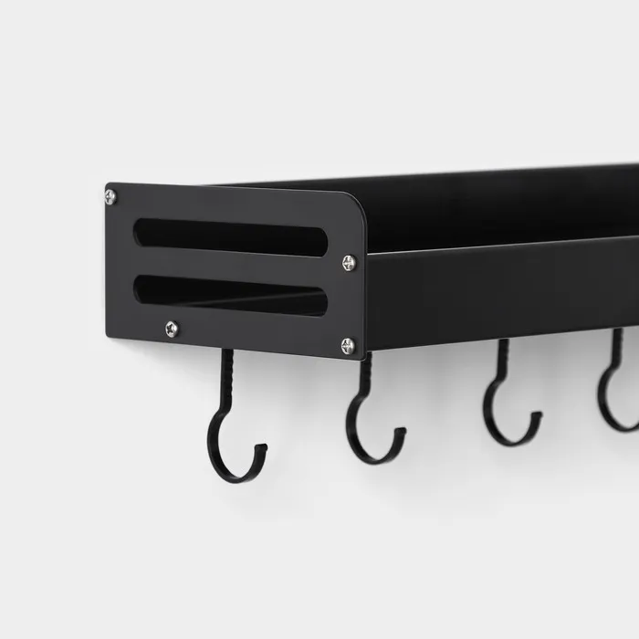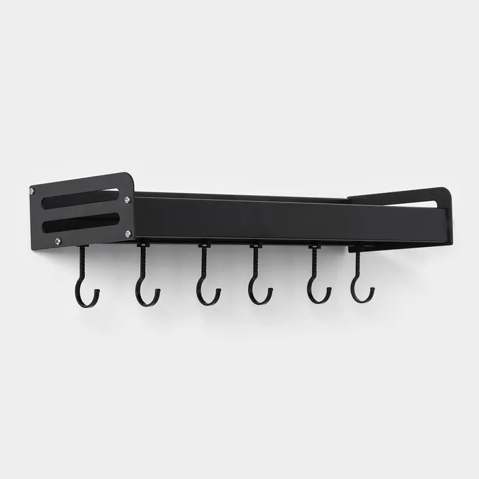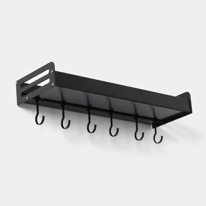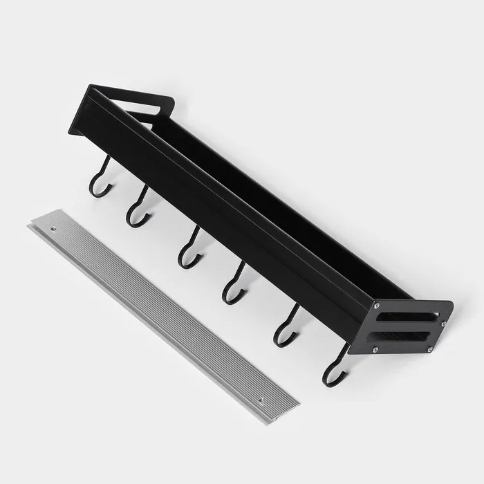 Полка подвесная, 6 крючков, 40×13.5×5.5 см, алюминий, чёрная — Характеристики