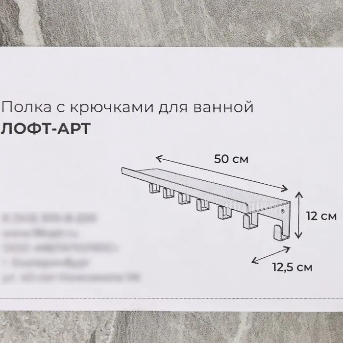 Полка с крючками «Лофт Арт», 50×11×7,5 см, чёрная — Характеристики